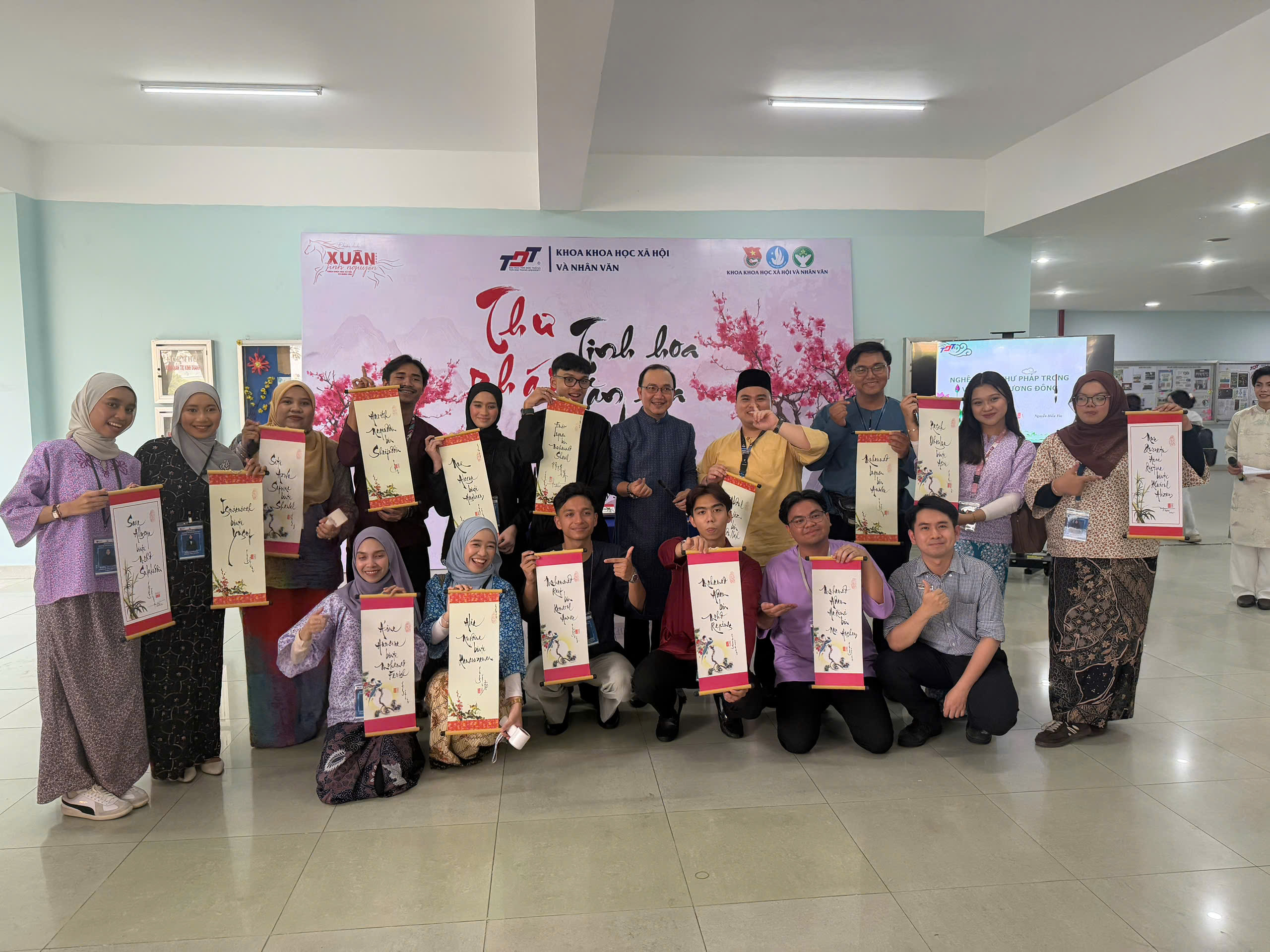 Later that afternoon, at Building B Hall, TDTU, students were introduced to the art of Vietnamese calligraphy through a presentation by MSc. Nguyen Hieu Tin, Deputy Head and in charge of the Tourism Department. This activity helped international students gain deeper insights into traditional cultural values and the national identity of Vietnam.
